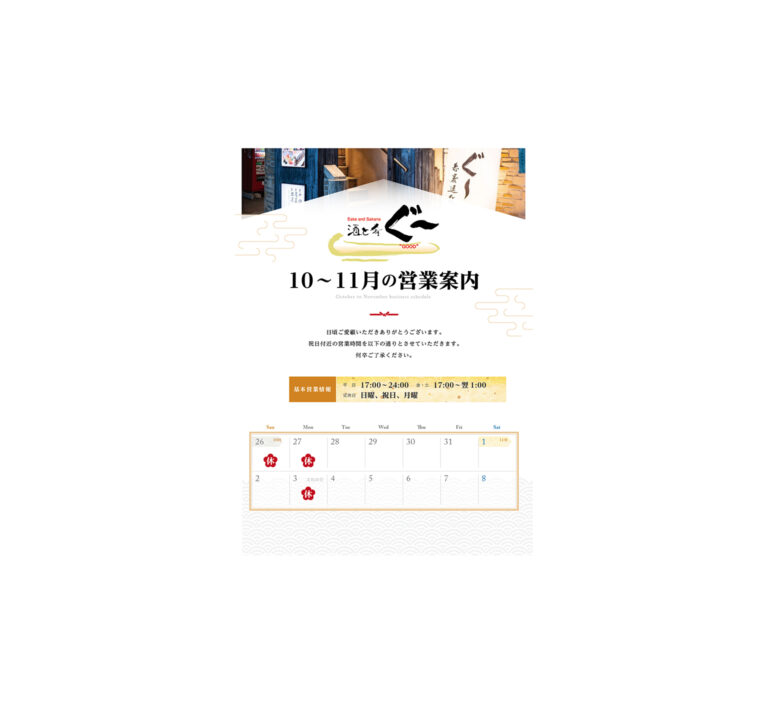 いつもサイトをご覧いただきありがとうございます。11月の営業カレンダーをご用意いたしました。当店の営 […]