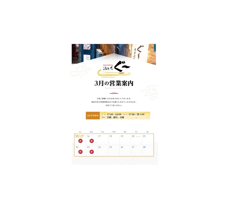 3月 祝日付近営業のお知らせ